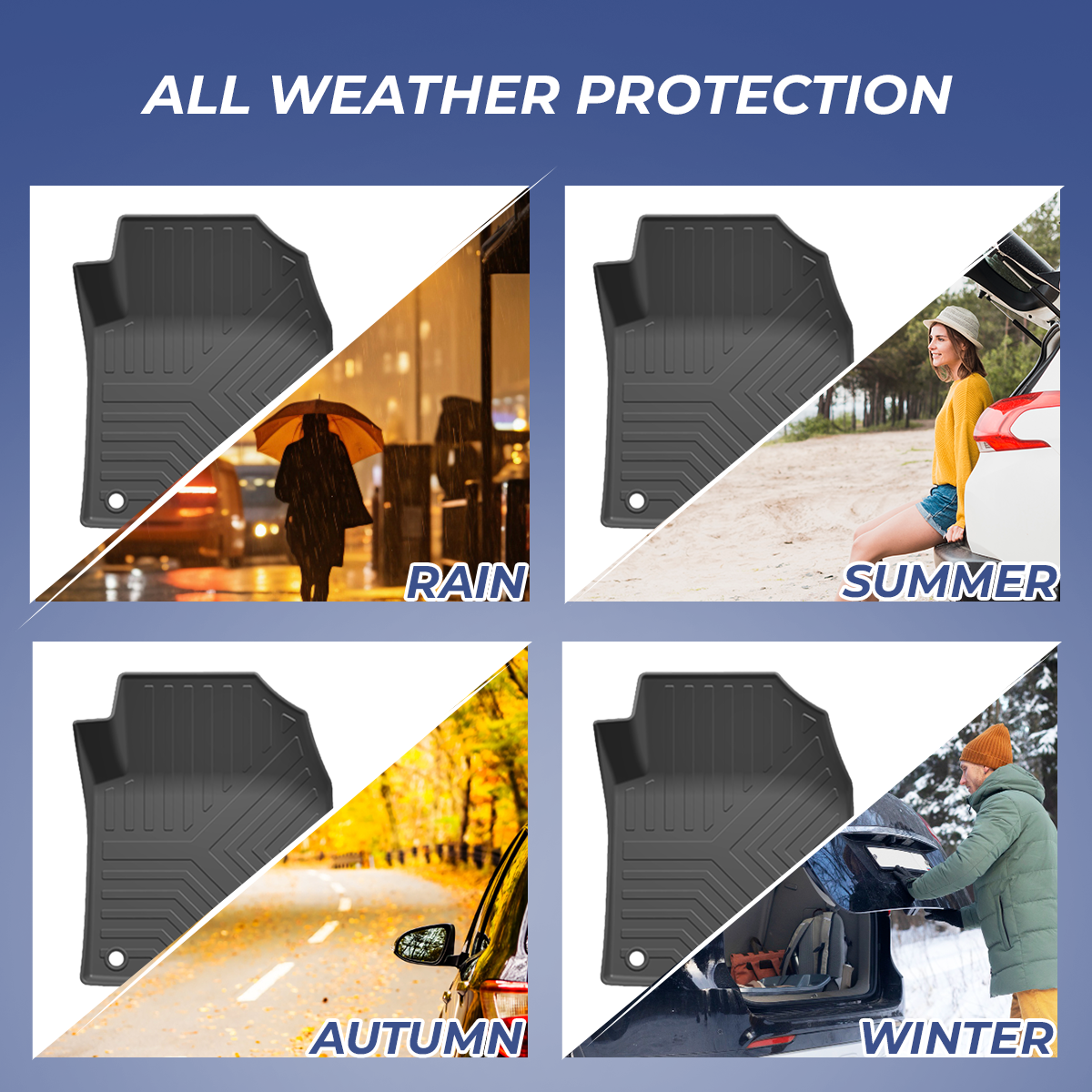 Crafted from premium-quality, odorless TPO material, these mats are highly durable, flexible, and eco-friendly. The deep channel design effectively traps mud, dust, and water, preventing spills from reaching your car’s original flooring. Whether it’s rainy days, dusty roads, or daily commuting, these mats are built to handle all weather conditions.